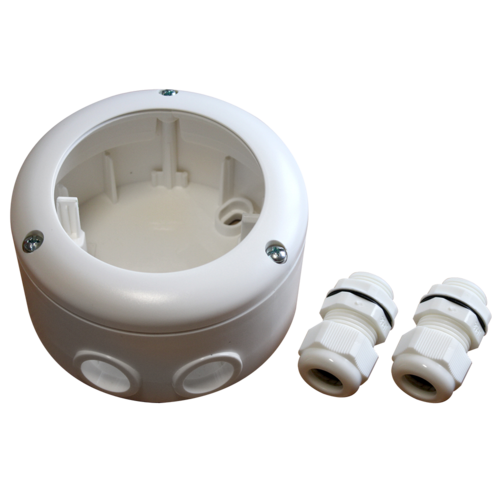 O grau de proteção dos seguintes detetores de presença pode ser incrementado de IP54 para IP65 com a utilização desta caixa de montagem de superfície: PD4-M-1C-C-SM, PD4-M-2C-SM, PD4-M-2C-C-SM, PD4-S-SM, PD4-S-C-SM