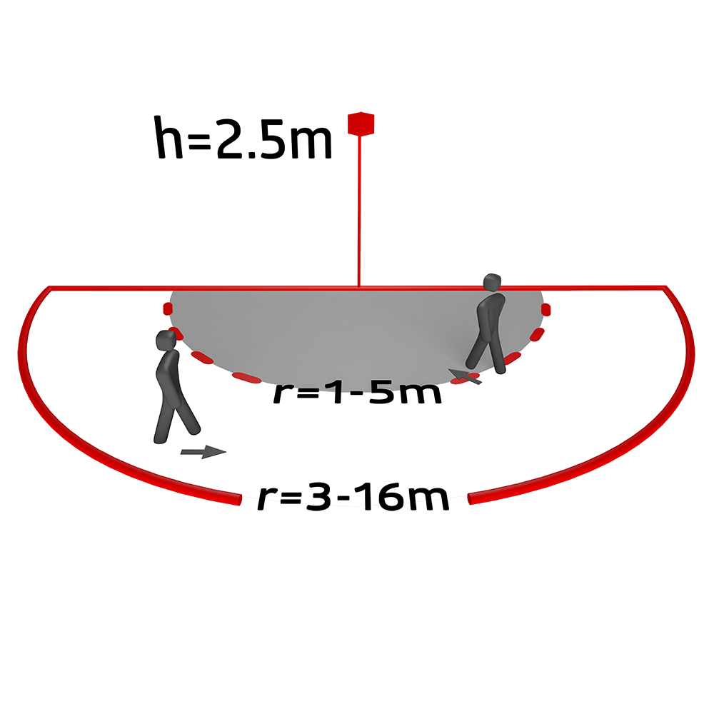 Monitored area (tangential movement): 400 m² / 2.5 m mounting height