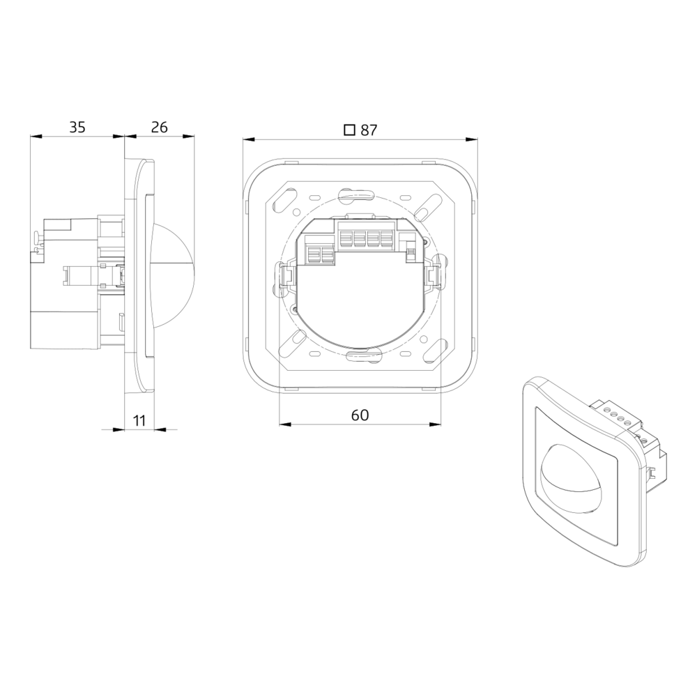 • Dimensions: 86 x 86 mm