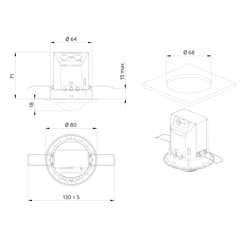 Detection area: horizontal 360° (Ceiling mounting)