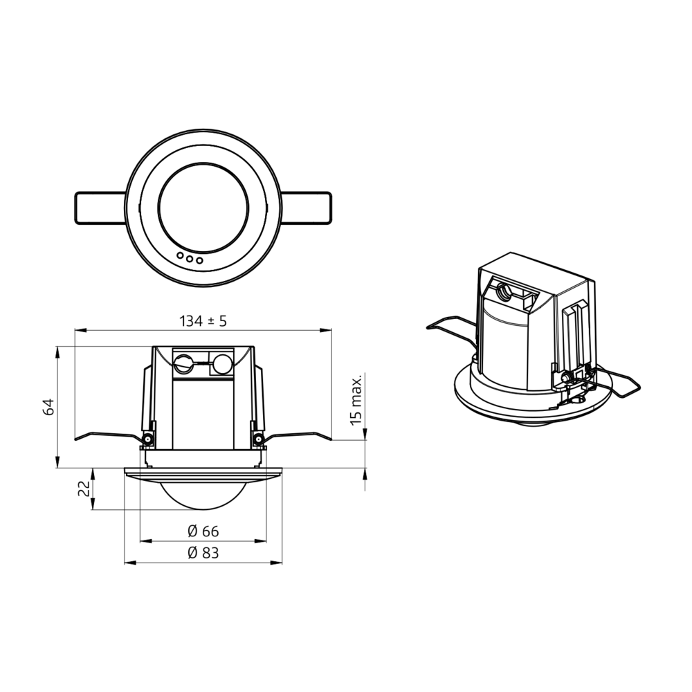 Detection area: horizontal 360° (Ceiling mounting)