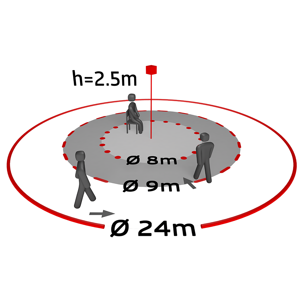Monitored area (tangential movement): 450 m² / 2.5 m mounting height