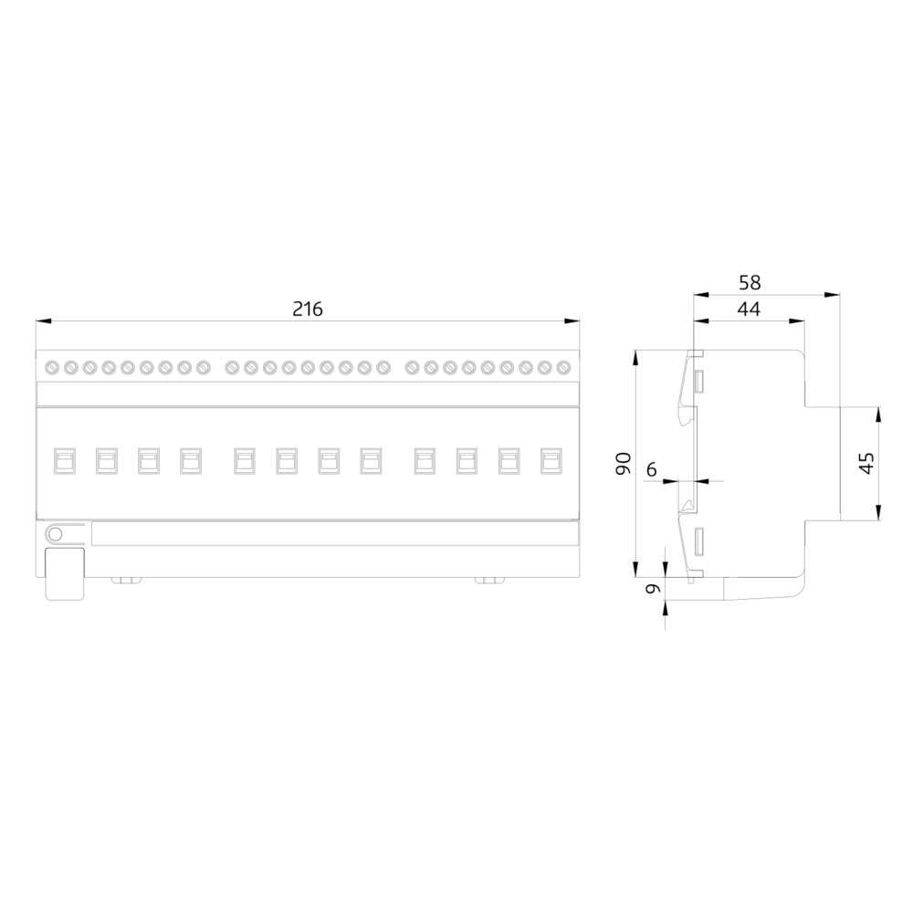 Dimensions: 90 x 216 x 64 mm (12 TE)