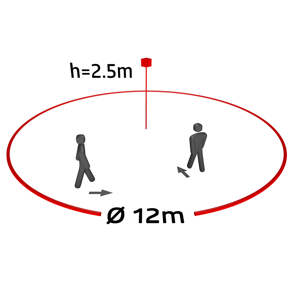 Portée: max. Ø 14 m pour un mouvement frontal