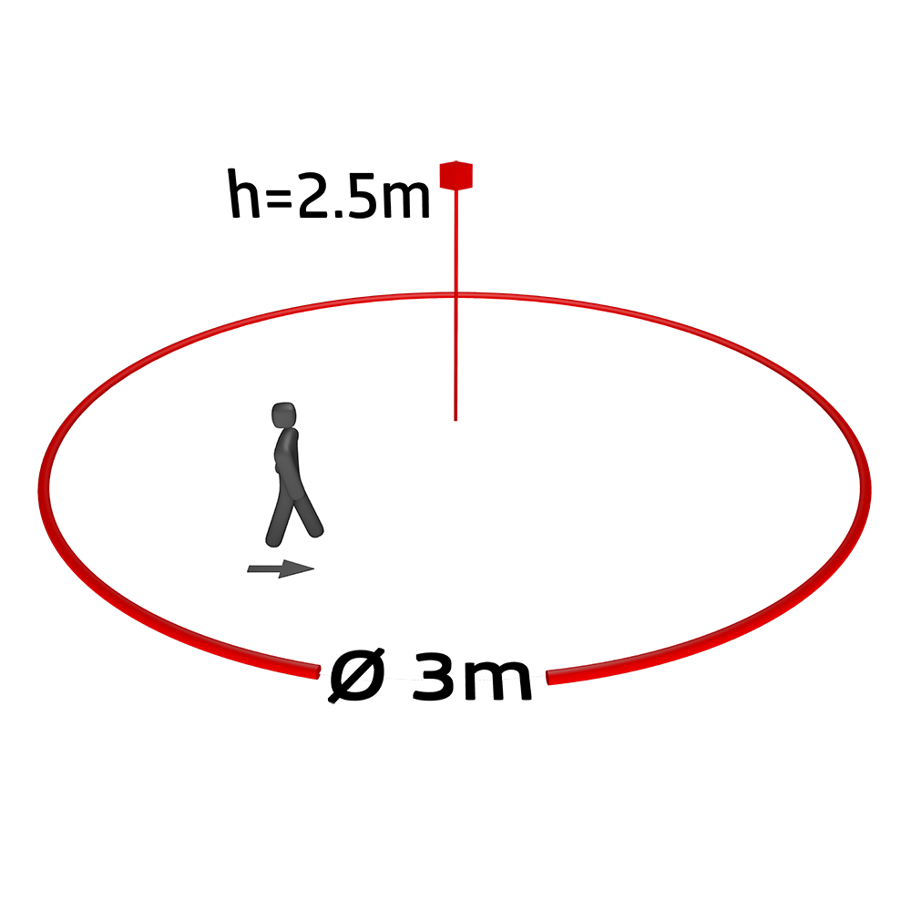 Surface contrôlée pour une approche tangentielle: 7 m² / 2.5 m Hauteur de montage